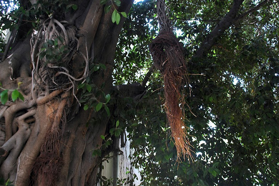יש משהו בפיקוסים האלו, עם שורשי האוויר והנוף הצפוף. בחורף הם מגן של ממש מפני הגשם ובקיץ מפני השמש החמה.
