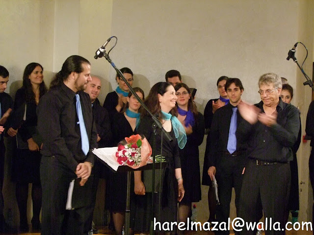 זעקת אם זעקת אם הוא שמה של יצירה שנכתבה ע"י תומר הישג (לחן וניצוח ) המבוצעת ע"י המקהלה הקאמרית שליד האקדמיה למוסיקה ומחול בירושלים, השיר נכתב סמוך למועד חטיפתו של גלעד שליט ומאז בוצע על במות מרכזיות בארץ. ביום ראשון 8.11.09 הוזמנו ע"י תומר הישג ארבע פעילות של מטה המאבק למען גלעד שליט , לצפות בקונצרט שנפתח ביצירה המדהימה - זעקת אם. האמת , הפעם גם אני נשארתי המומה וחסרת מילים ( מה שאף פעם לא קורה לי....) ומזל שהיתה איתי המצלמה כדי לצלם את הערב המדהים . ( טוב האמת שקיבלתי אישור מראש לצלם. ) אין לי הרבה מה להוסיף, מלבד המלצה חמה חמה לשבת בנחת, להדליק רמקולים ולראות את קטע הוידאו שבראש הרשימה , מדובר על ארבע וחצי דקות של הנאה צרופה . ( הסולנית - דניאלה סקורקה ) בהמשך הערב זכינו לראות את המנצח והמנהל האומנותי - סטנלי ספרבר , שבחר יצירות מדהימות גם מן התפילה וגם שירים מוכרים בעיבודים עבור המקהלה כאשר חלק מהערב היה כקונצרט עם נגנים וחלקו השני כאקפלה. אקפלה נוספת שקיבלה עיבוד מרגש ע"י תמי קליינהויז (שגם ניצחה על מקהלת הבנות ) היה - אור וירושלים ובשיר הסיום המנצח סטנלי ספרבר שיתף את הקהל בשירה ביחד עם המקהלה  אז תודה ענקית למנהל המקהלה - תומר הישג על ההזמנה לערב נפלא תודה לכל הזמרים והנגנים  ואני בהחלט מקווה לזכות לשמוע ולראות אתכם שוב - הייתם מעולים !  תודה |