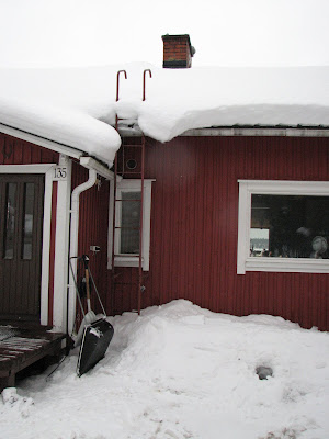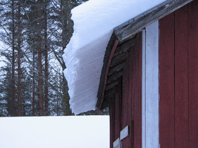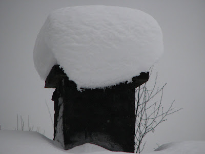 שימו לב לגובה השלג שגלש מהגג ליד הקיר