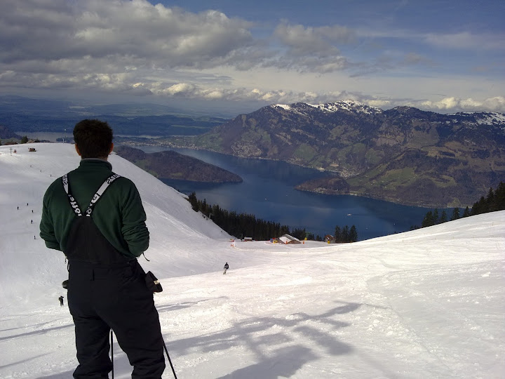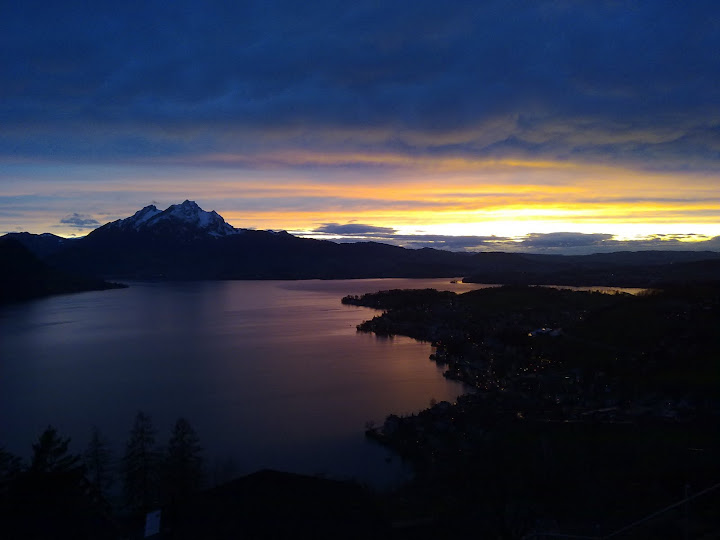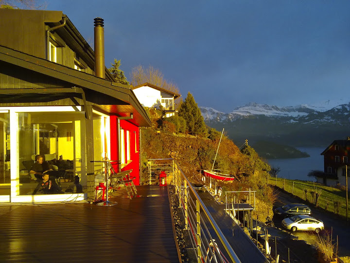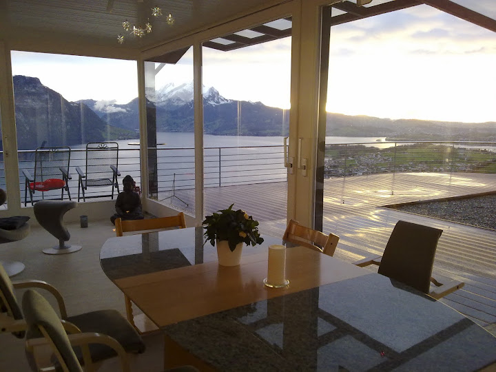 וזה הנוף מפינת האוכל. כן, אח שלי גר כאן! 240 מטר מעל אגם לוצרן, ומול הרי האלפים.