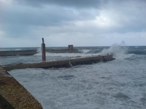 קפה, יושבת מול, אולי נשענת עלי ומשאירה על מכנסי השחורים שני כתמי מלח לבנים, מלח שדבק בפרוותה עם רסיסי המים שניתזים. הרוח פורעת שיער ותלתל אחד פוגש בלשוני...מלוח (-: