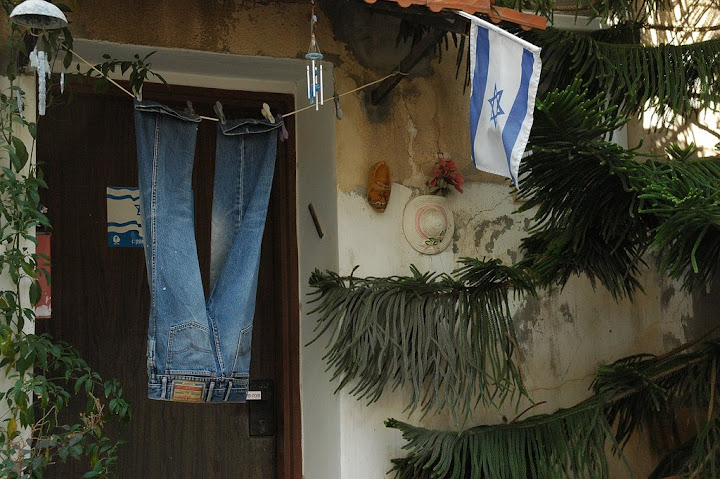 צטט: ד פ נ ה 2009-04-22 07:49:26 תמי, בחירה נהדרת. הייתי מצלמת את התמונה לאורך כך שגם הגגון וגם סף הדלת ייכנסו לפריים. ג'ינס אמריקאי, נעל הולנדית, דגל ישראל, פעמוני רוח אוניברסלים ומזוזה יהודית.